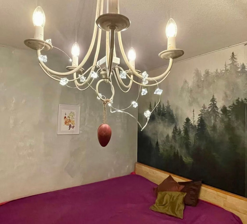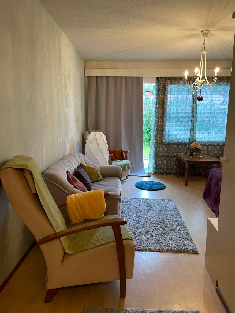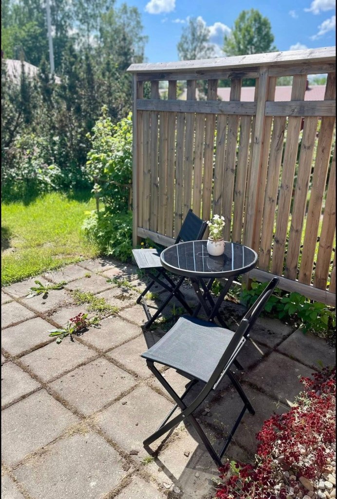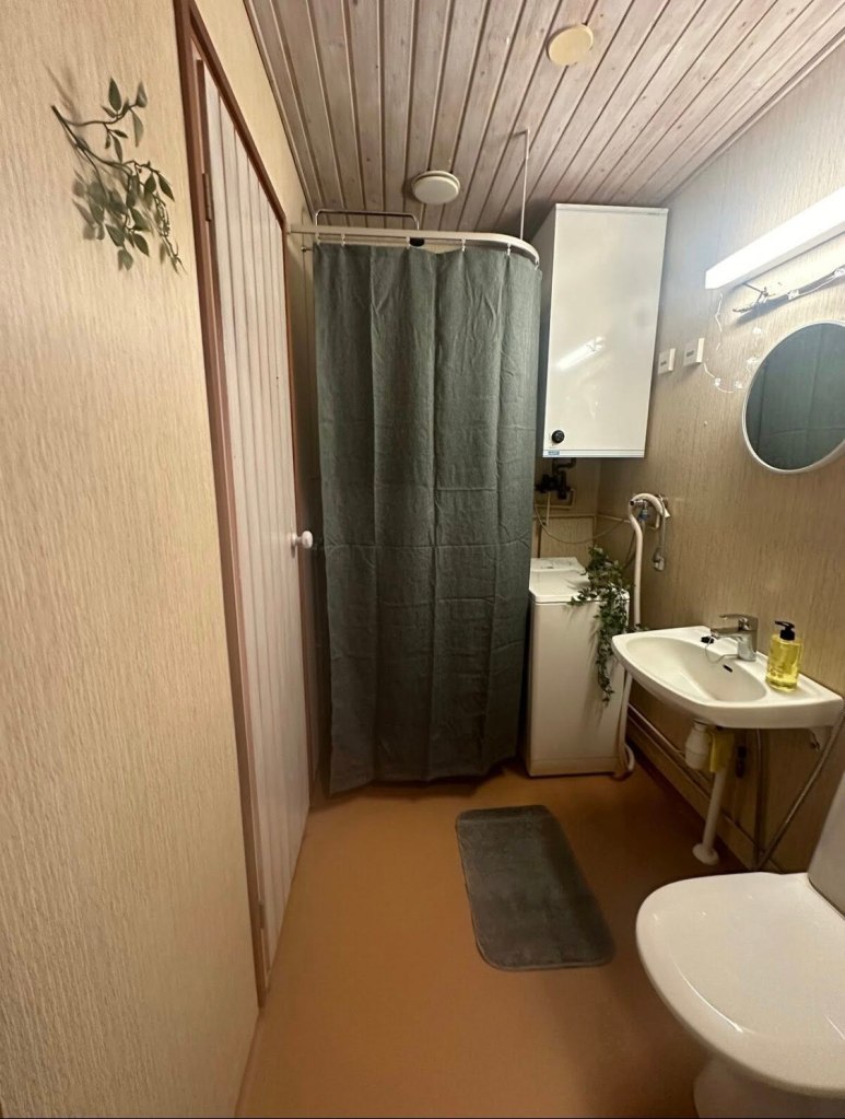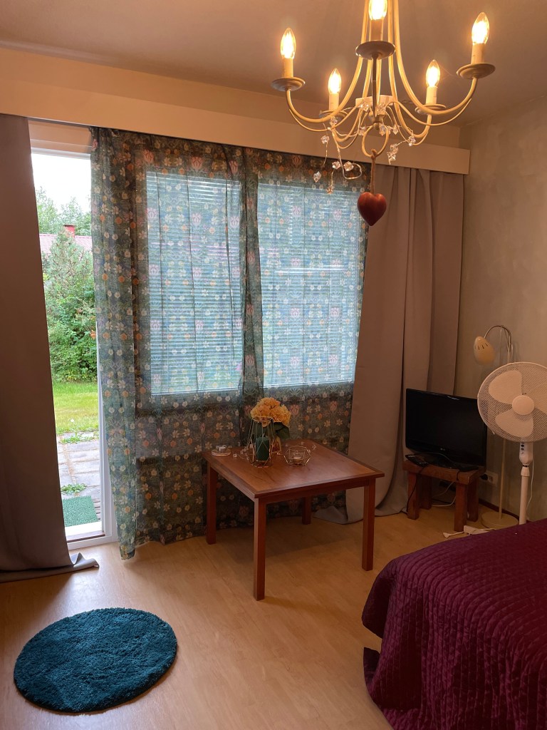 Punahilkan kammarissa on yksi huone ja pieni keittokomero lisäksiSänkyjä on kaksi, toinen on pehmeämpi ja toinen napakampi. Valitse mielesi mukaan.Olohuoneessa on pimennysverhot, jotta myös kesän valoisina öinä uni maistuu.SähkösaunaKylpyhuoneessa on pesukone. Kaapeista löytyy pesuainetta, silityslauta ja -rauta sekä pyykinkuivausteline.Pieni takapiha.Punahilkka on Saanan isoäidin nuorena tyttönä saama taulu.